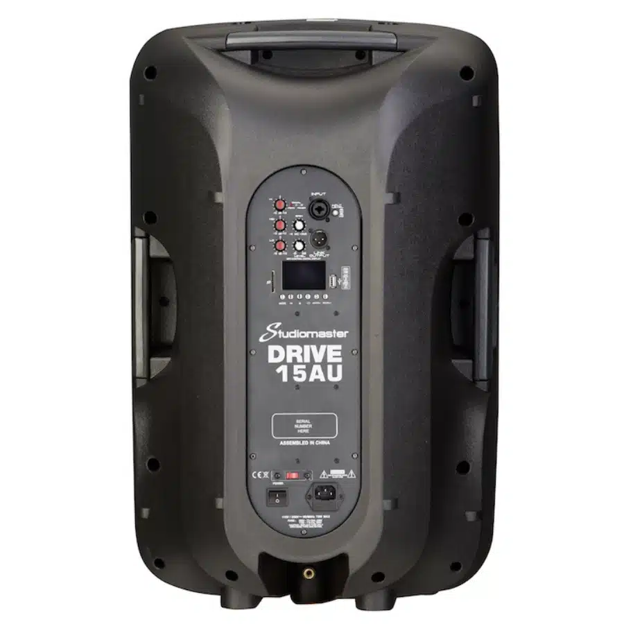 Studiomaster’s Drive 15AU is a 15″ two way active full range cabinet, featuring Bluetooth playback, USB/SD card player and SD card recording. The 310w RMS of power provided by the Class D amplification is housed in a high quality injection moulded cabinet which is durable and lightweight. The Drive 15AU features a 3 band EQ, Combined XLR and jack input, gain and level controls, and link output.