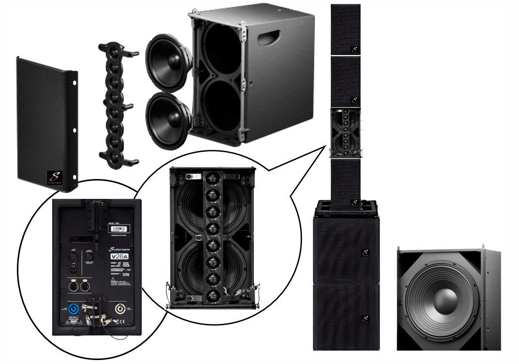 The new V26 system is a compact active vertical array system. designed for stacking or flying.