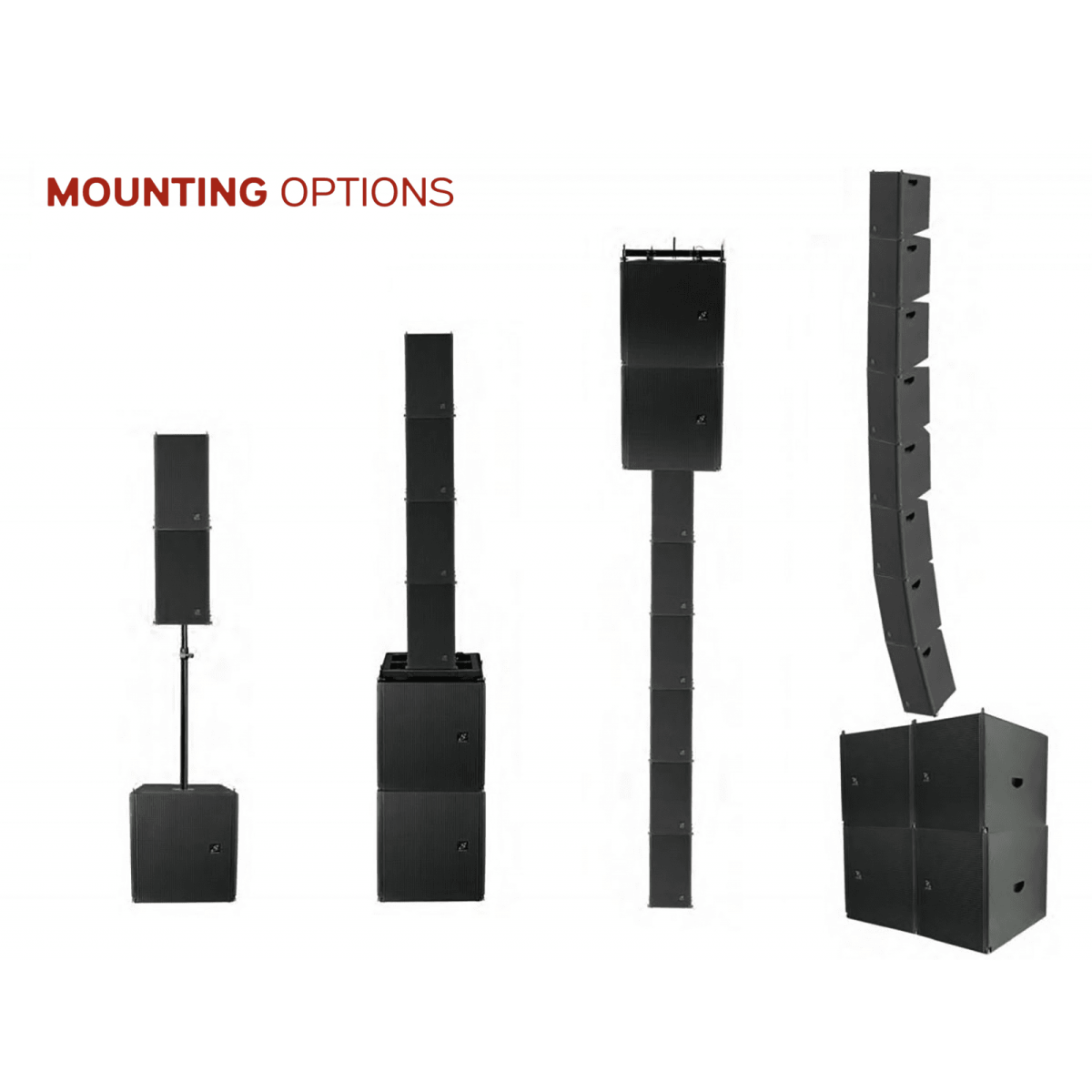 Starting from 3 cabinets make the MF/HF,securely locking to each other with adjustable angles between O and 8 degrees.