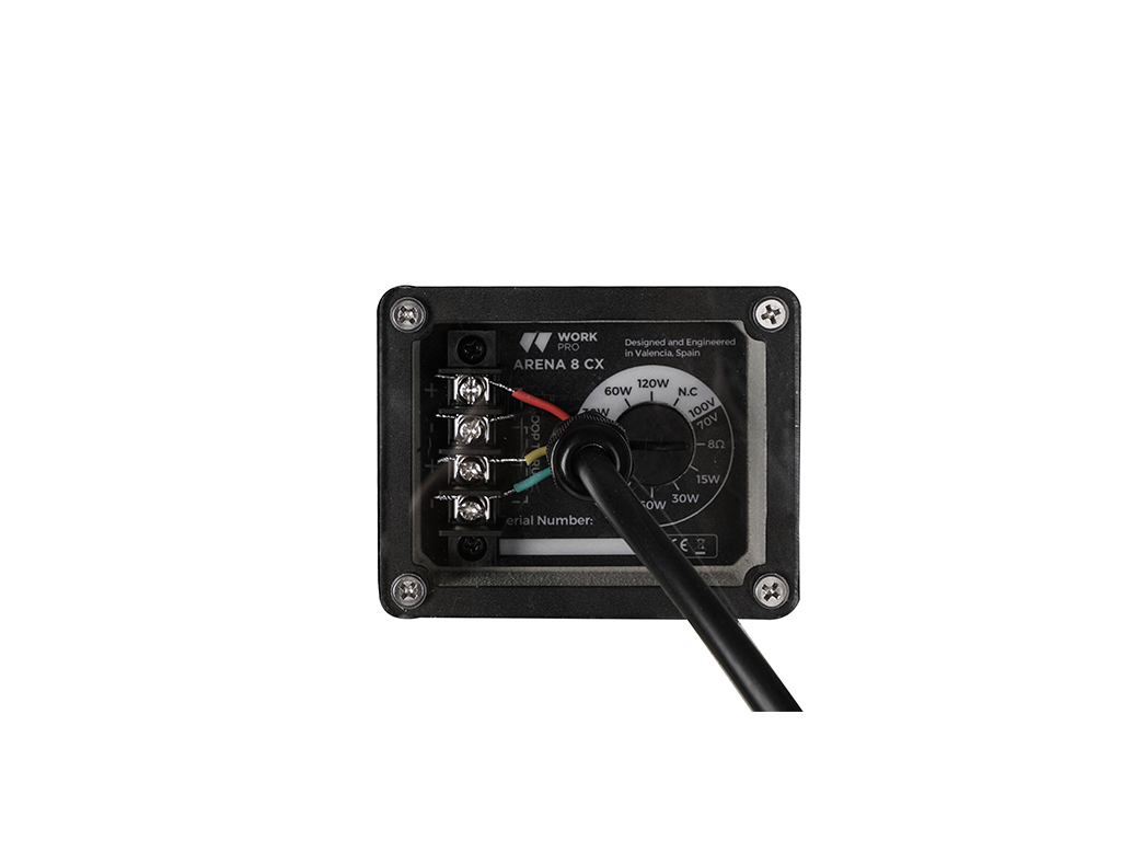 Installation LoudspeakersThe ARENA 8 CX, 8” compact coaxial loudspeaker, provides 360W @ 8 Ohm and can be integrated into 70/100V line installations, it is designed to provide high quality sound reproduction in applications requiring extreme weather resistance. Its water-resistant polyvinyl construction, hydrophobically treated grille, moisture-sealed crossover and waterproof connector make it reliable under prolonged exposure to harsh environmental conditions.