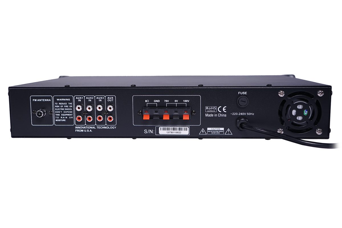IPA-120, 120W çıkış gücü ve çoklu bağlantı seçenekleriyle tasarlanmış bir public address (PA) amfisidir. 100V/70V sabit gerilim çıkışı ve 8Ω dirençli hoparlör çıkışları ile geniş alanlara uyum sağlar. MP3, WMA, WAV formatlarını destekleyen dahili MP3 oynatıcı, Bluetooth bağlantısı ve FM tuner özellikleri ile farklı medya kaynaklarını entegre edebilir. USB arayüzü ile mobil cihazlar üzerinden müzik dinlenebilir.