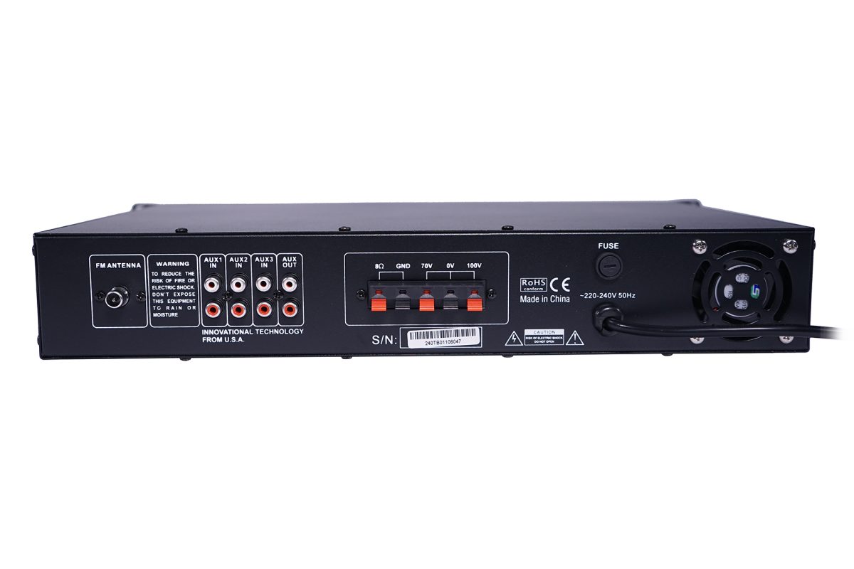 IPA-240, 240W çıkış gücü ve çeşitli ses özellikleriyle büyük alanlarda etkili ses iletimi sağlar. 100V/70V sabit gerilim çıkışı ve 8Ω hoparlör çıkışı ile geniş alanlara uyum sağlar. Dahili MP3 oynatıcı, Bluetooth bağlantısı, FM tuner ve USB arayüzü sayesinde müzik ve ses kaynaklarını kolayca entegre edebilirsiniz. 2 AUX girişi, 3 mikrofon girişi ve 1 AUX çıkışı ile farklı ses kaynakları ve cihazlarla bağlantı kurabilirsiniz. Treble ve bass kontrolü ile ses tonları üzerinde tam kontrol sağlar.