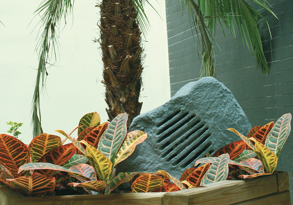 Installation LoudspeakersMR 110 G LINE can be integrated into an outdoor installation thanks to its size, shape and colour which imitates a garden stone (MR 110 G grey colour, MR 110 S earth colour). They incorporate an 8 Ohm woofer and a tweeter for a 2-way system. They can be installed in both low impedance (8 Ohm) and 100V line voltage applications. For this last mode, they incorporate a line transformer with 4 power positions: 3/7.5/15/30W. Both the output power selector and the cable input are located at the bottom, concealing its presence and integrating the loudspeaker as another element of decoration.