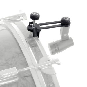 Compact holder to attach microphones to drums, esp. bass drums. The microphone can be slided up to 70 mm on the mounting rail and placed very near to the drum. Easy mounting, no parts to lose. Rubber washer and inserts absorb noise and shock, “RIMS” suitable. With 3/8″ thread. more