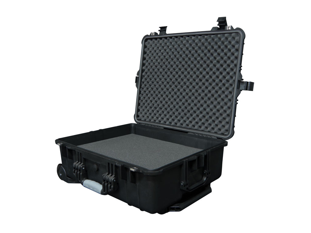 ABS case. Trolley. Inner protective foam. IP 67. Internal 544 x 199 x 419 mm. Black colour.